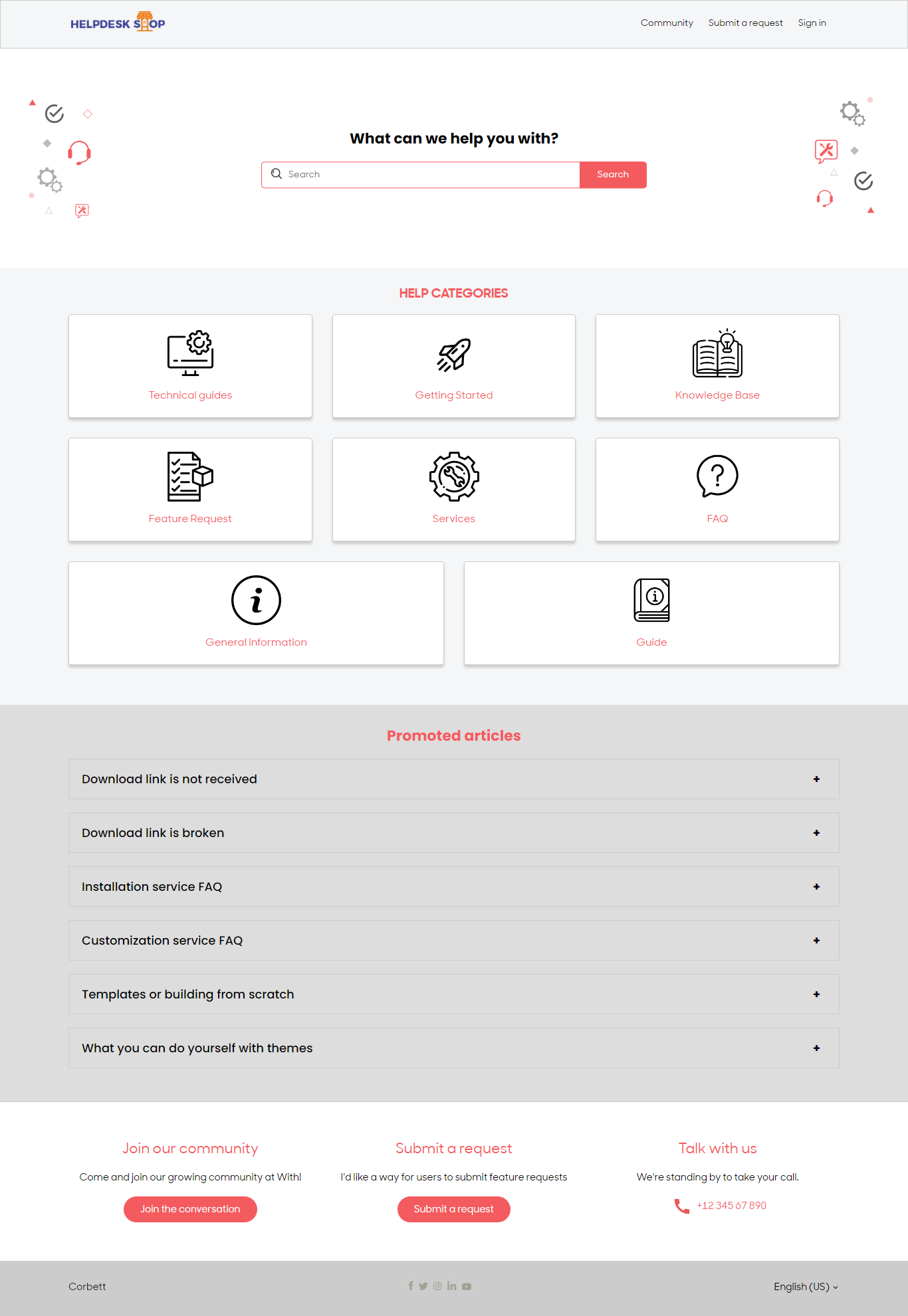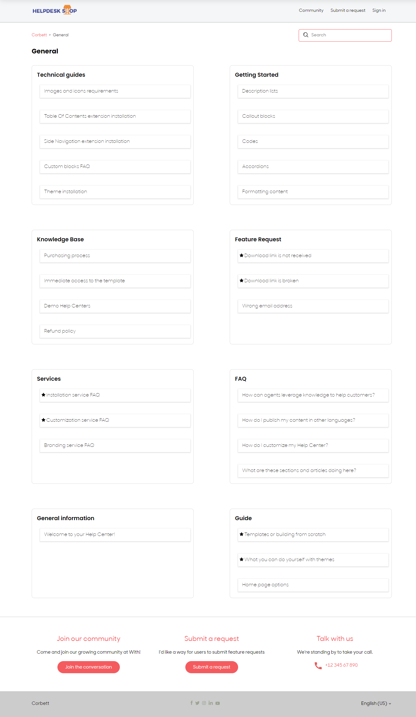 Corbett is a fully responsive multipurpose Zendesk Help Center (Guide) theme. The theme is a perfect balance between style and performance. All the elements of the help center are arranged in a way that keeps navigation super easy. The theme comes with an attractive black background at the back of a floating search box at the center of it all. It has a stunning full-screen layout with beautiful blocks and interactive design elements, which generate an airy and elegant feeling in the help center. This theme has multiple boxes, which are sections. It makes navigation very easy in the theme. Your sections are displayed on the home page and all the articles can be seen by clicking on the section boxes. Note:- The best way to use this feature is to make one single Category and put all the sections inside it. However, this theme only allows a maximum of twelve sections. It follows the latest trends in web design and features a brand new layout with a long list of features.