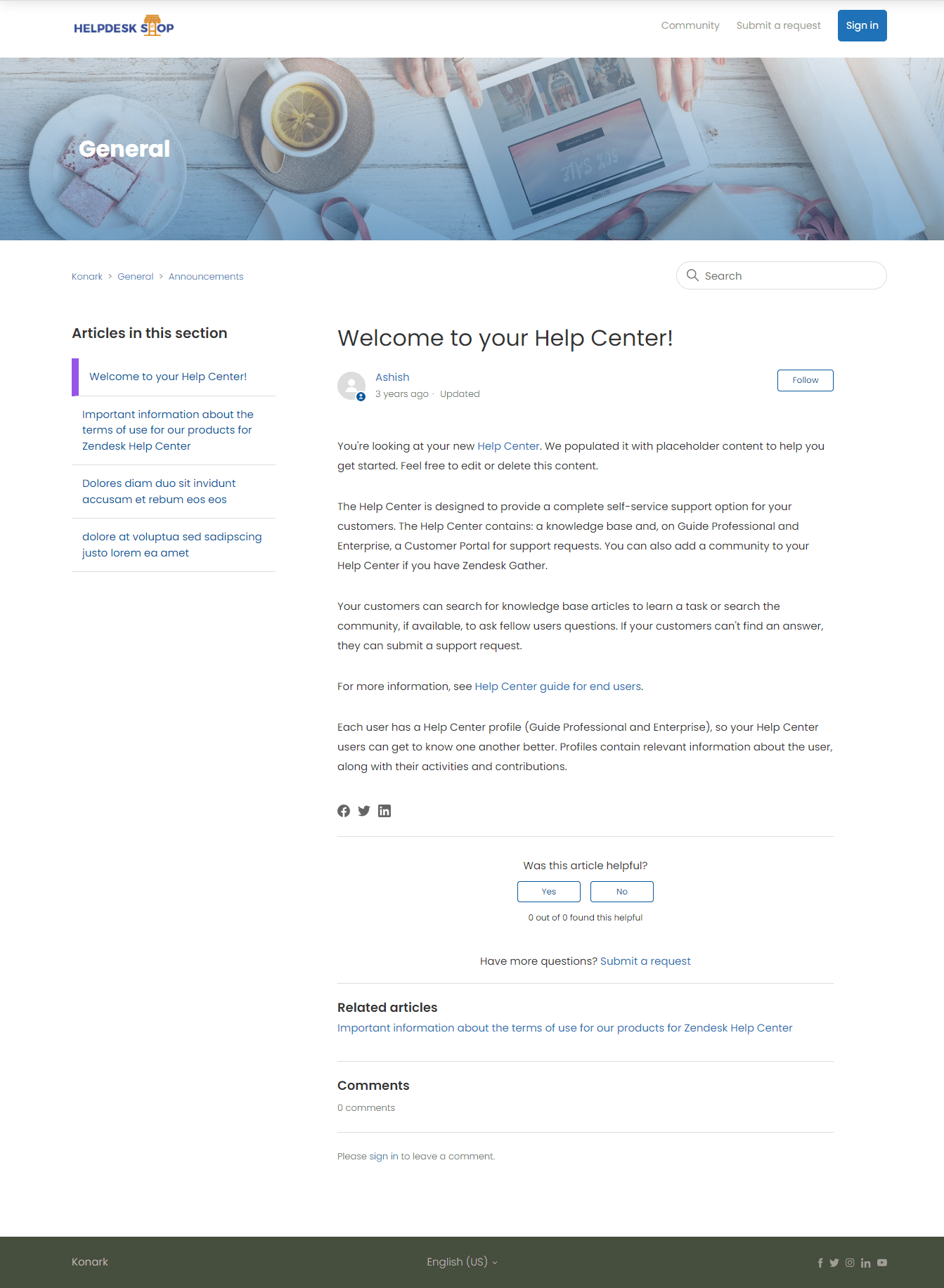 Konark is a fully responsive multipurpose Zendesk Help Center (Guide) theme. The theme is a perfect balance between style and performance. All the elements of the help center are arranged in a way that keeps navigation super easy.