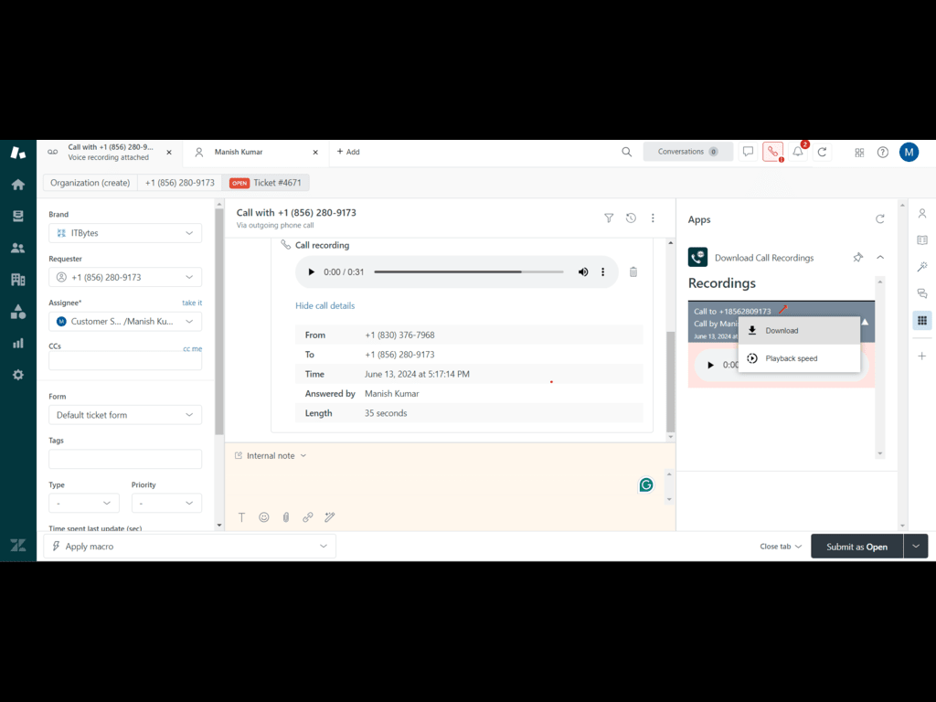 Tags: Download Call Recordings , Zendesk App ,