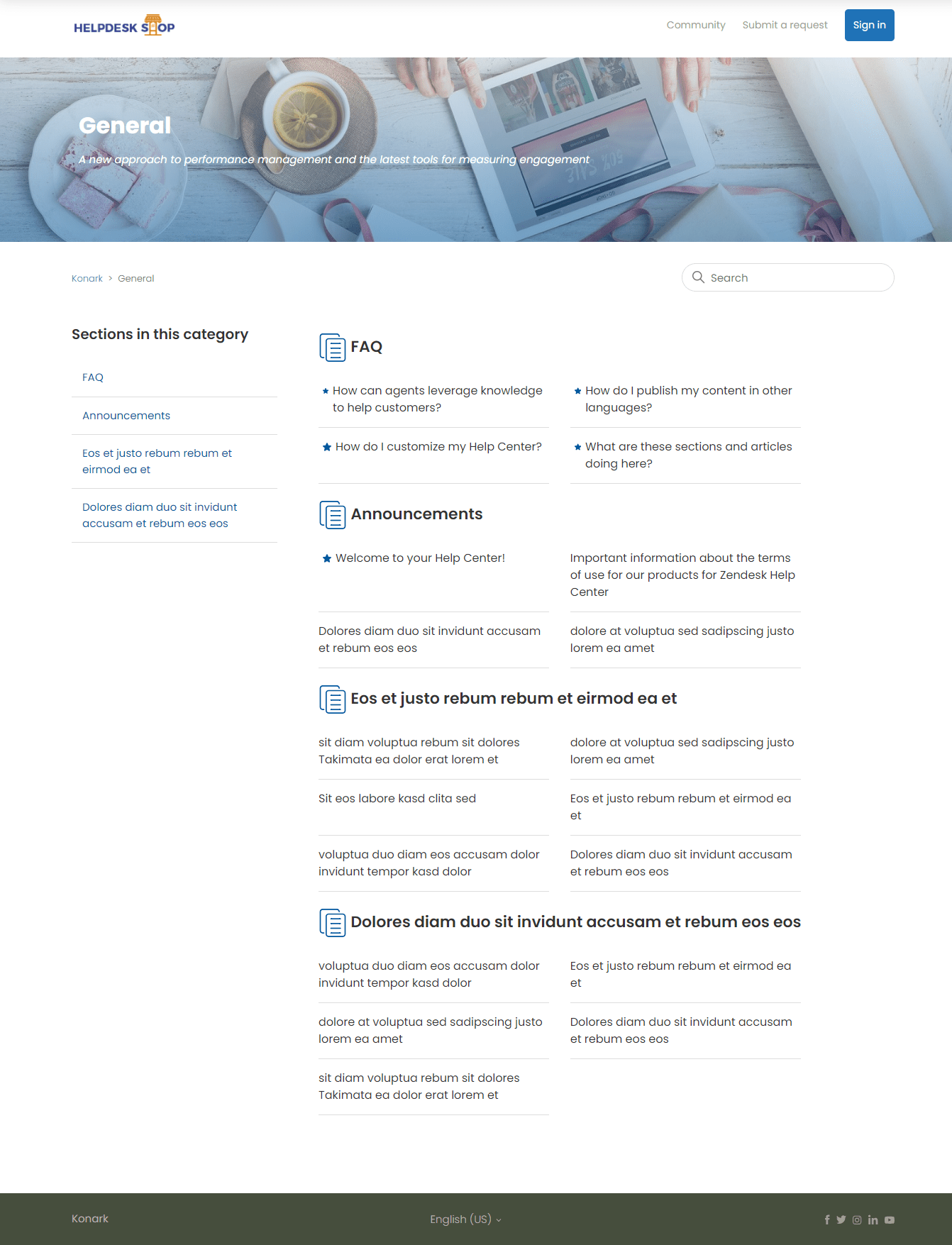 Konark is a fully responsive multipurpose Zendesk Help Center (Guide) theme. The theme is a perfect balance between style and performance. All the elements of the help center are arranged in a way that keeps navigation super easy.