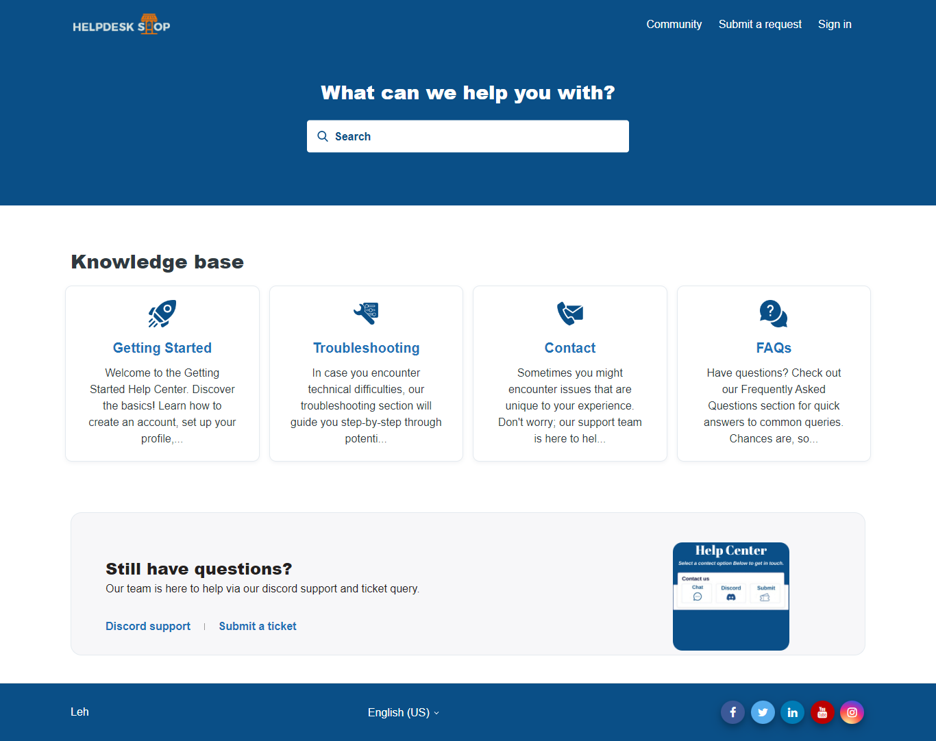 Home custom blocks are the elements displayed in the Help Center. This theme has a maximum of six custom blocks.